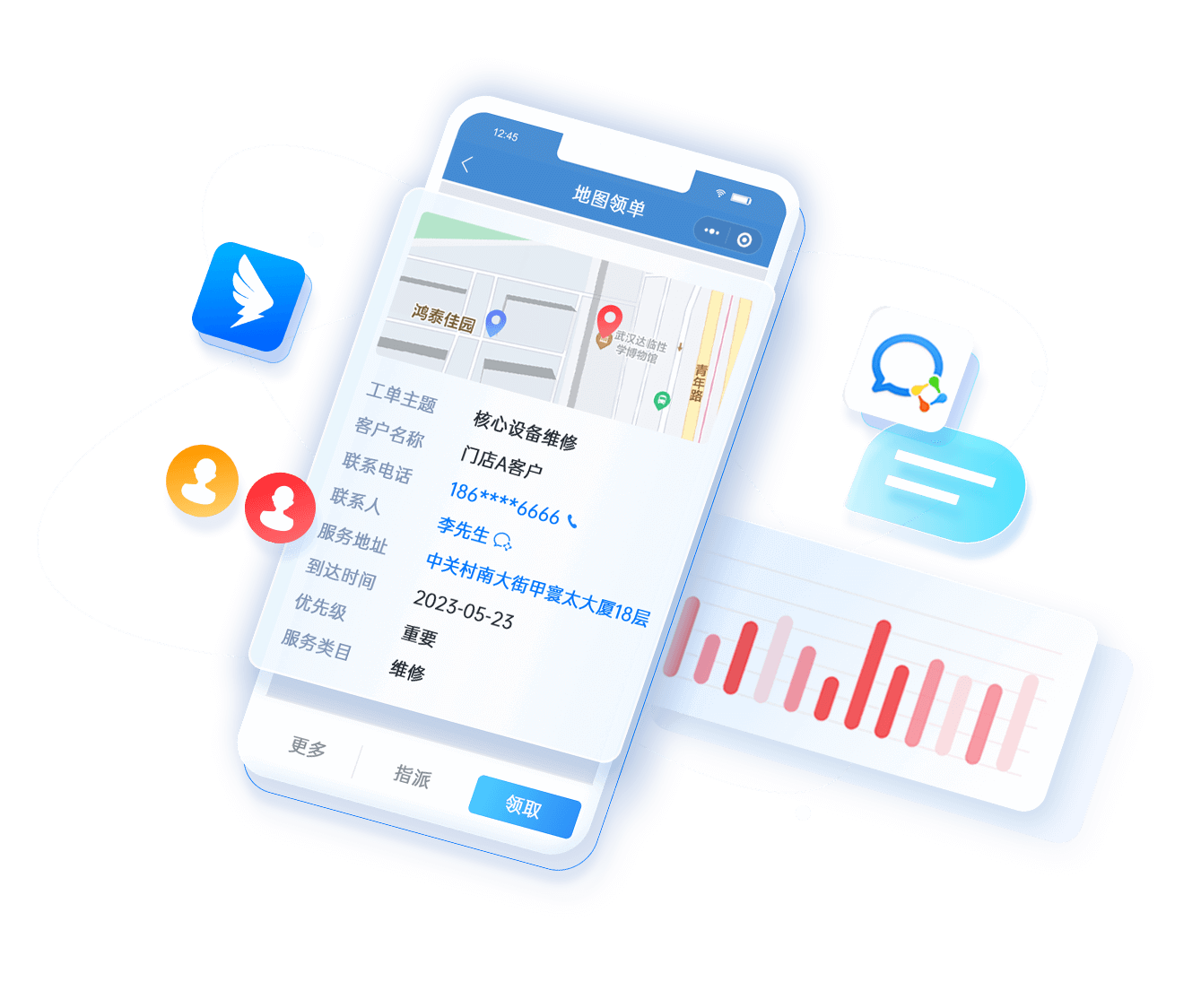 - 按區(qū)域/工單類型/產(chǎn)品類型進(jìn)行地圖派單、手動(dòng)派單和工單池?fù)寙?/li>